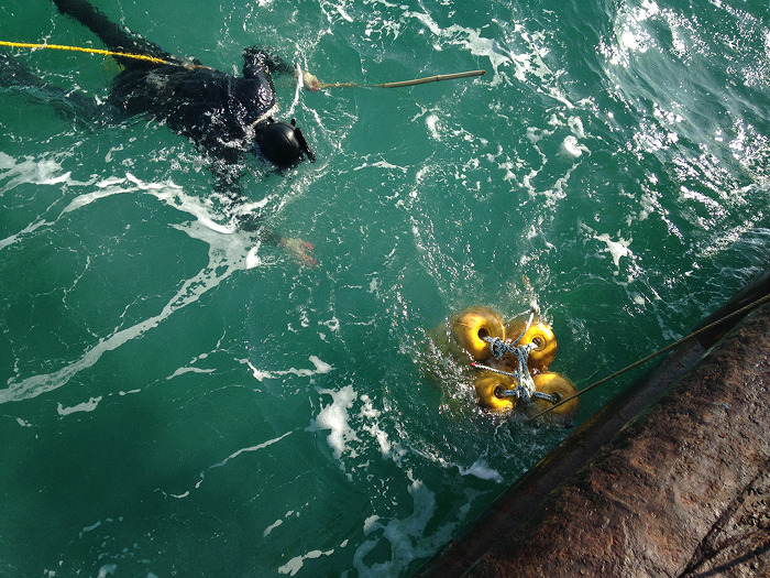 우리 잠수팀의 작업장인 G17호 바지선에 현지인 한명이 24시간 타고 있습니다.
