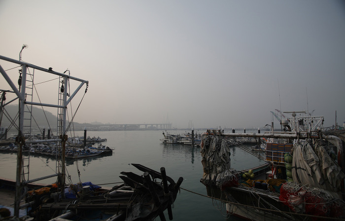 거제도에서 어렵게 찾아 온 목포 북항은 흐릿한 아침입니다.
