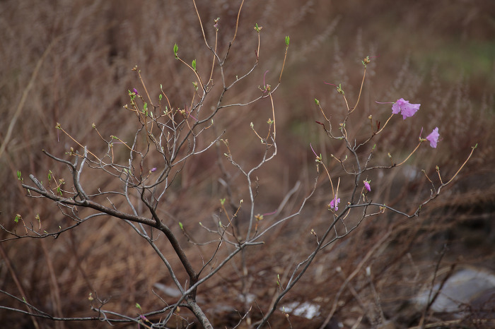 그 미친듯 불어 제키는 비바람을 버틴 네송이 산진달래꽃.