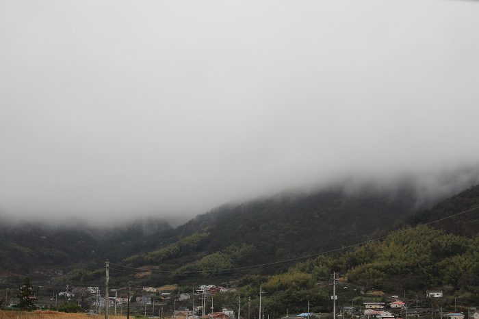 산진달래, 그리고 운무에 쌓인 앵산..