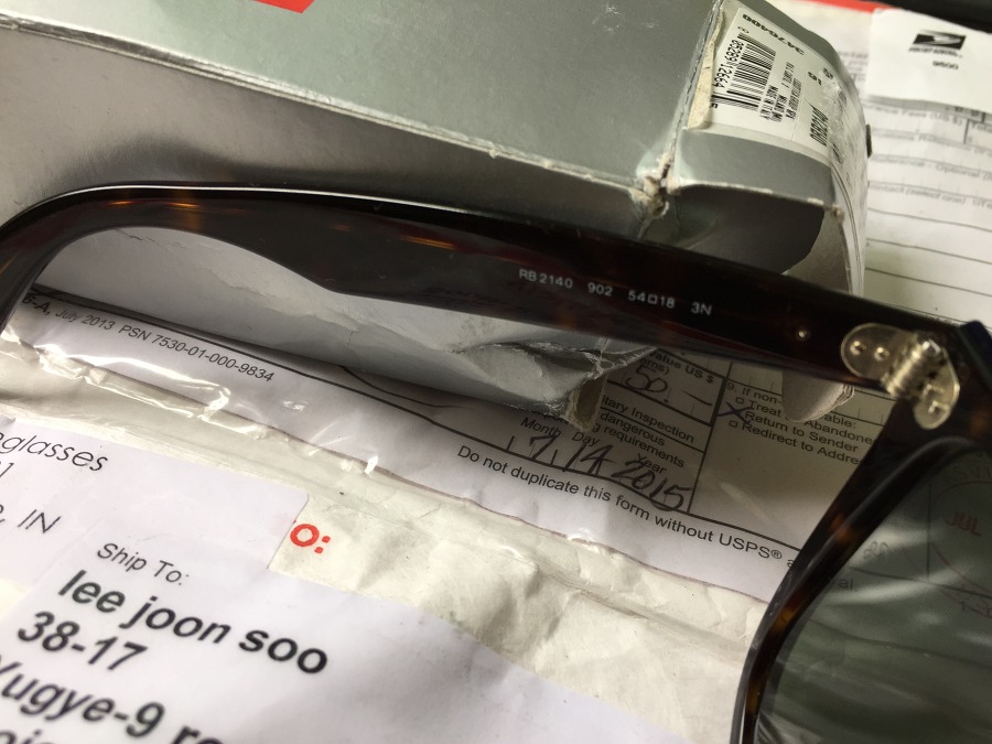 거기다가 더 기가 막혔던건 봉투를 개봉해 보니 선그라스를 넣은 박스가 개판인 겁니다.