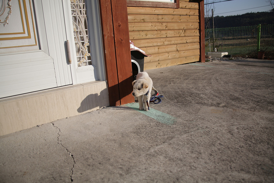 집에 데리고 왔을땐 털 색깔이 회색이였습니다.