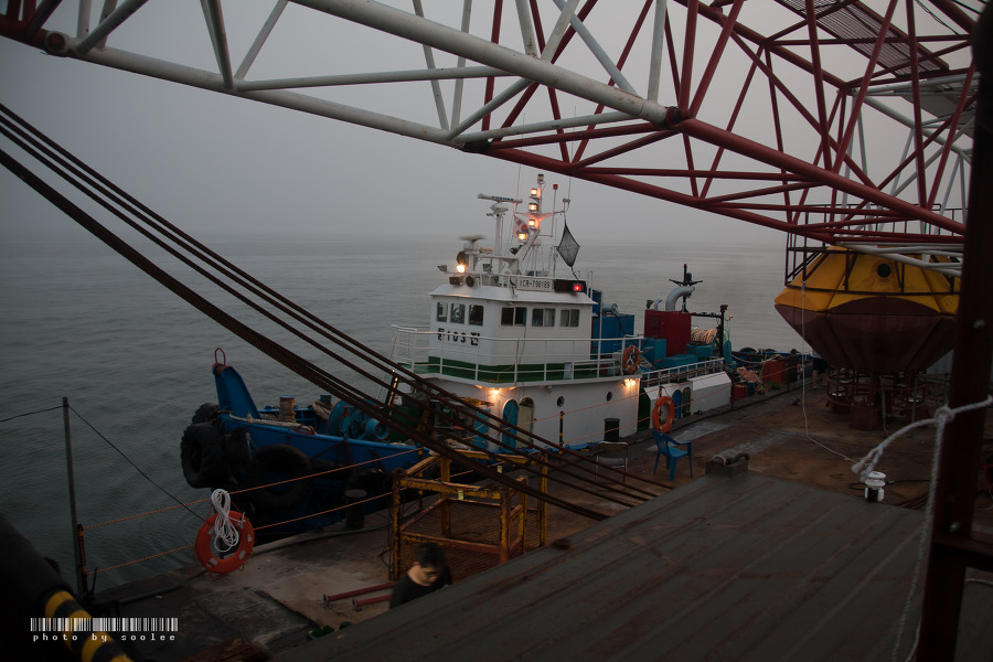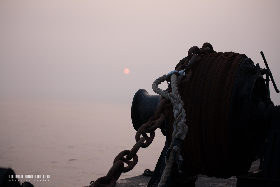 작성일자 2016년 08월 06일 글쓴이 sooleenas연평도 첫째 날~ 인천 연안부두를 떠나 밤 새도록 달려와 등부표가 있는 소 연o도 근처에서 앵커를 내렸습니다. 이제 바다 위에서 수평선 위로 뜨는 해를 찍는 일만 남았다고 기대에 잔뜩 부풀었는데… 안개가 자욱 하네요. 제 복에 뭘 더 기대했다는게…ㅎㅎㅎ 글 번호: 100590
