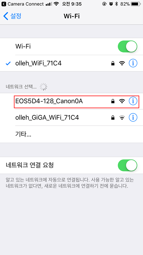 먼저 와이파이 설정으로 가면 자신의 카메라가 나타 납니다.