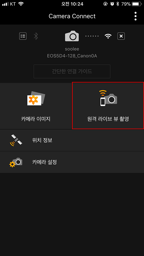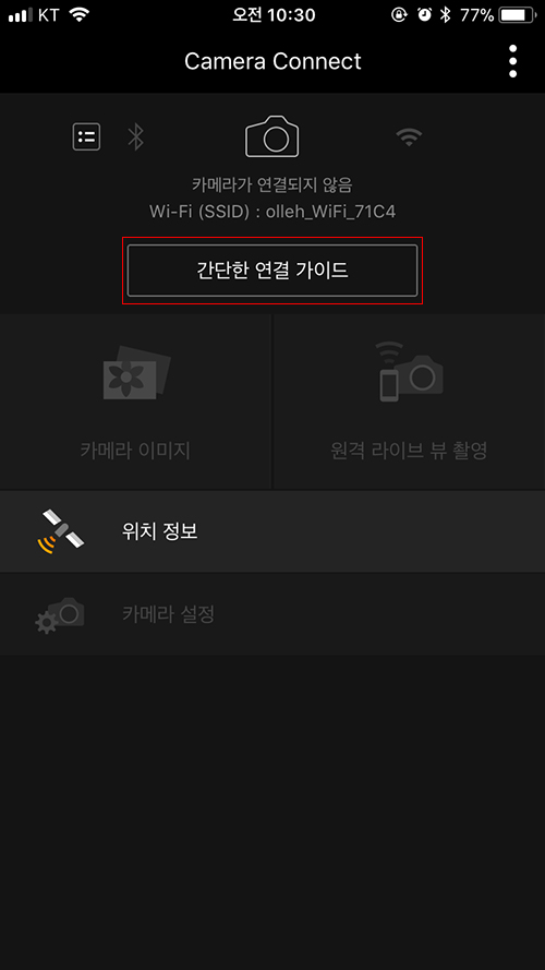 이제 카메라를 작동 시켜주는 리모컨 역할을 해 줄 자신의 스마트폰에 연결을 해 줘야겠지요?