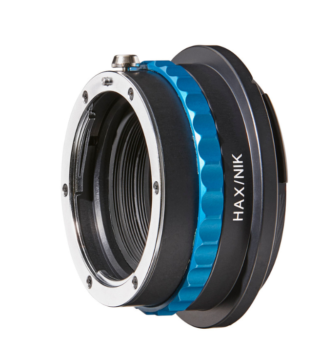 사진 속 제품은 니콘 F 마운트 렌즈를 Hasselblad X 시스템(X2D, X1D)에 장착하기 위한 기계식 어댑터, 흔히 HAX / NIK 타입이라 불리는 제품이다.