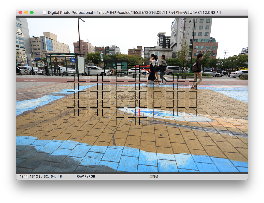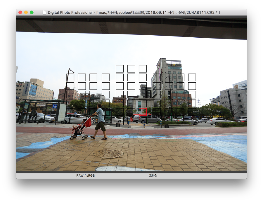아래의 이미지 중 스크린 샷은 AF 측거점(빨간 네모)을 중앙에 놓지않고, 주변부에 놓았다는것을 보여 주기 위한 것이고요.