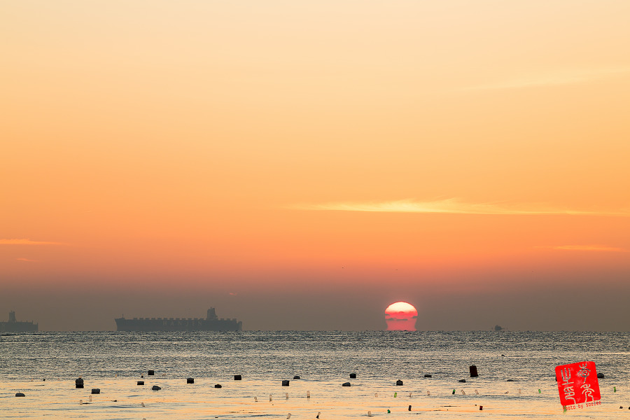 그렇지만 오늘 오메가는 떳는데, 해수면에 낮게 깔린 헤이즈와 구름이 색감을 망쳐 놓습니다.