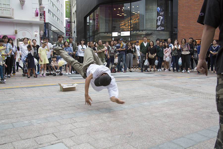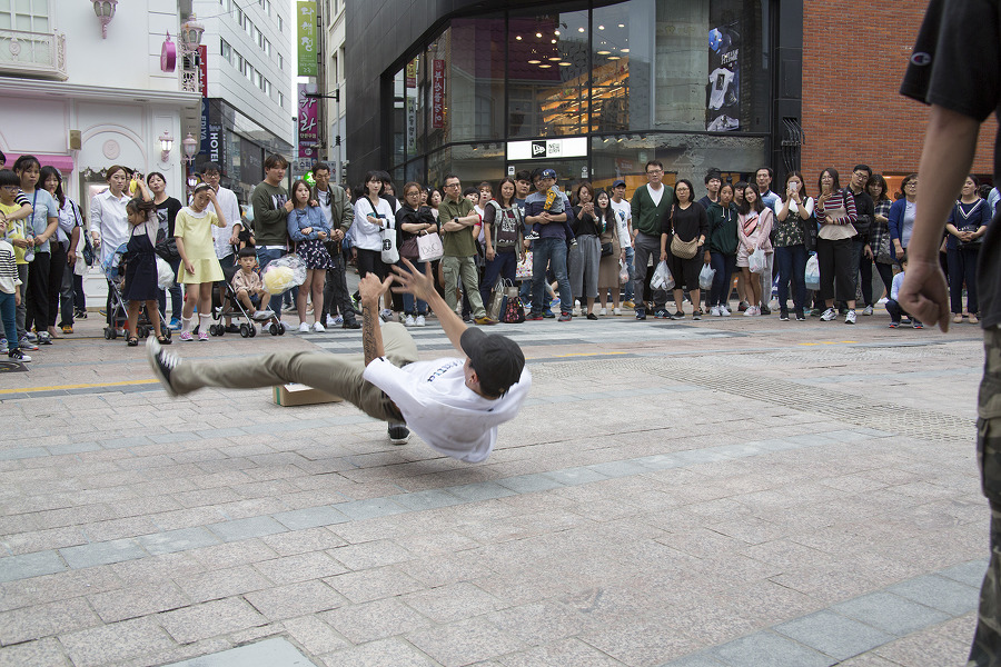 올서보에 놓고, iso를 잔뜩 높인 후 고속연사로 찍었는데 비보이 몸짓이 얼마나 빠른지 모션블러가 나네요.