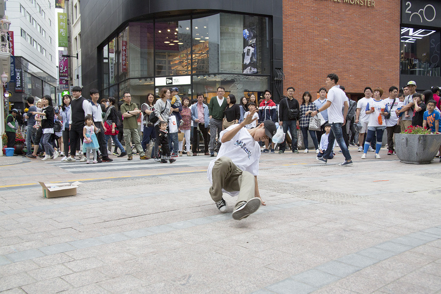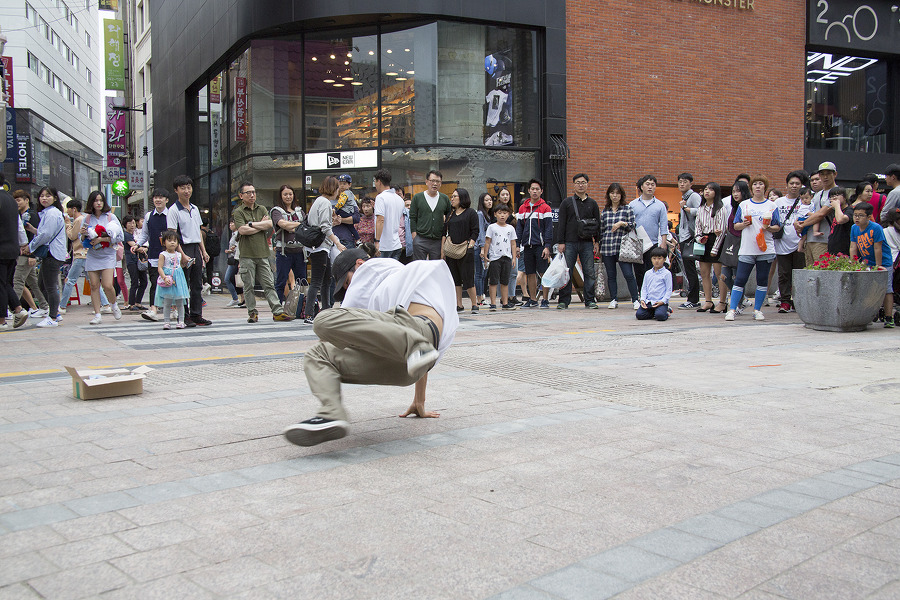 집사람 문우당 서점에 가는 길에 동행 했다가, 용두산 올라가는 계단 앞에서 공연하는 비보이를 봤습니다.