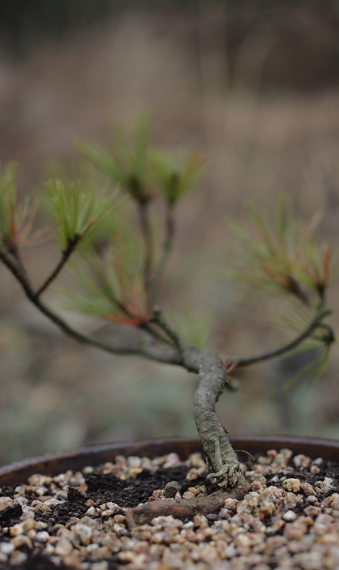 춘양목 밑둥 굵기는검지 손가락 정도 굵은데 제법 나잇살 먹은 테를 냅니다.