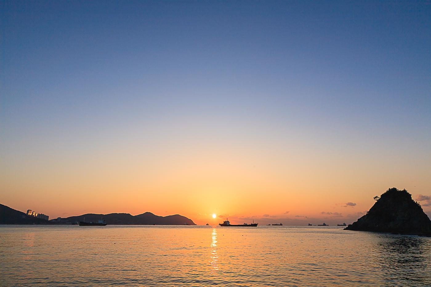 수평선에 낮게 깔린 구름층과, 주전자섬을 가로막고 있는 배로 인해 그림이 좋질 않네요.