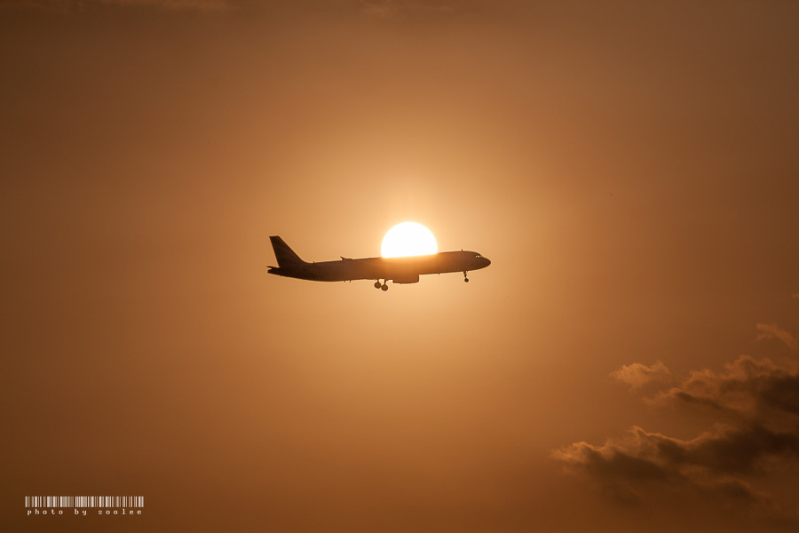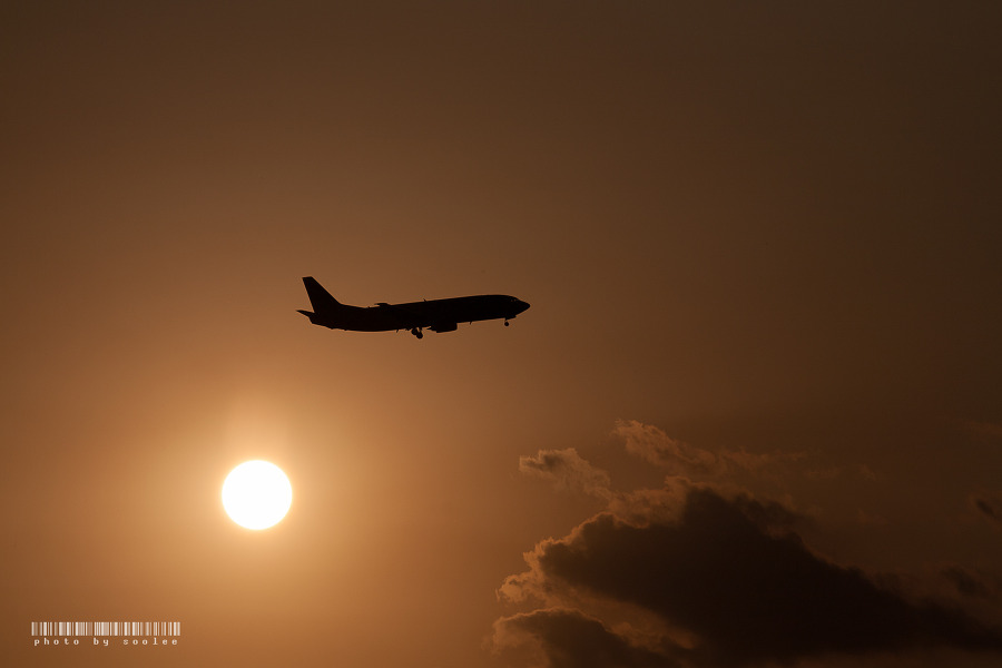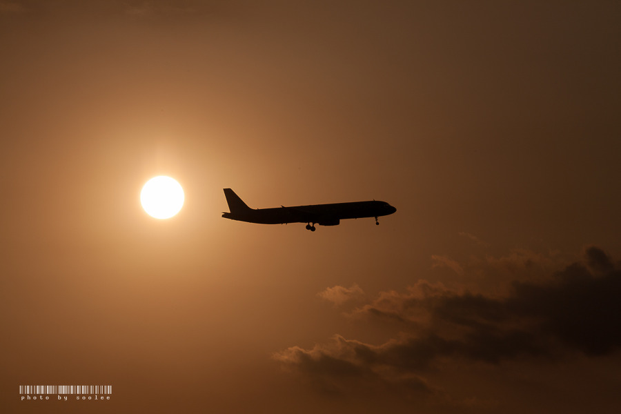 석양을 등지고 활주로 랜딩Zone으로 진입하는 비행기..