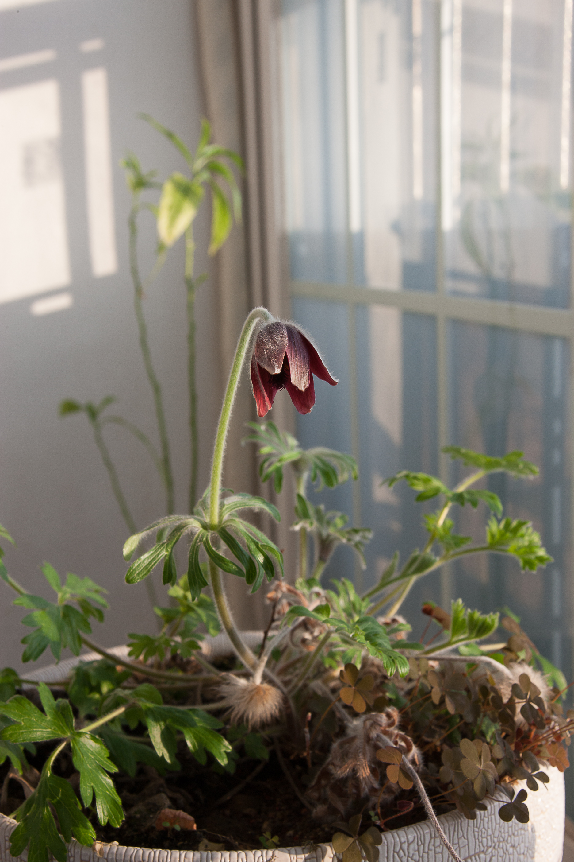 아래는 베란다 화분에 심어 놓은 할미꽃인데 완전 개화 했습니다.