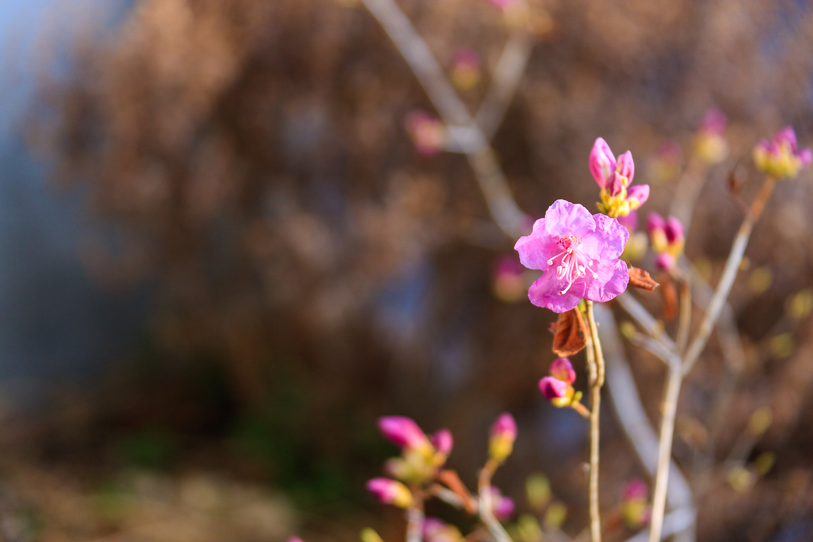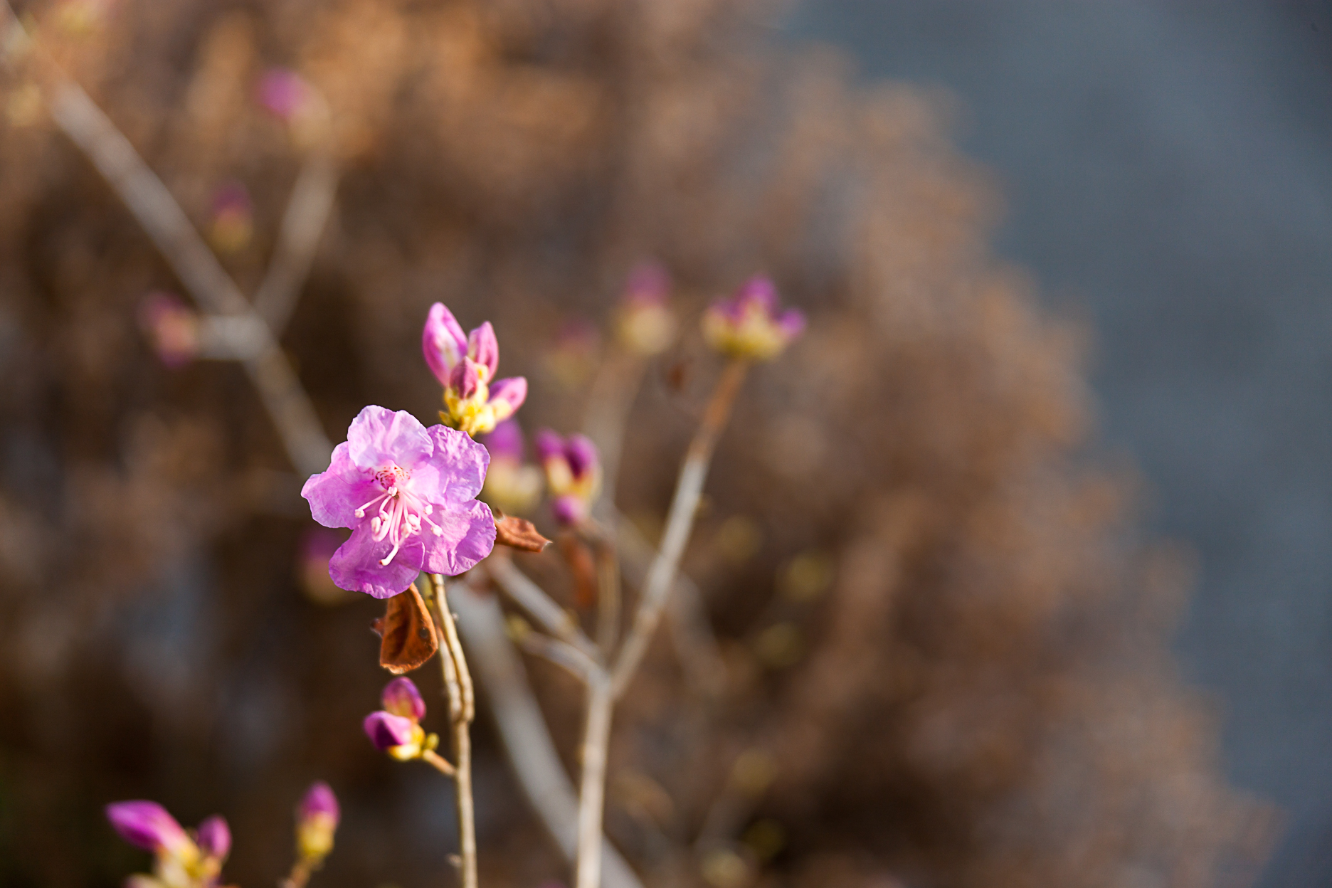 작성일자 2018년 03월 14일봄 입니다 -진달래- 2년 전 고향에서 온 진달래가 개화 하기 시작 합니다. 어릴때 할머니 따라 웃메붕지에 화전 가던때가 생각 나네요. 꽃은 변함이 없는데, 저에겐 서리가 내렸습니다.