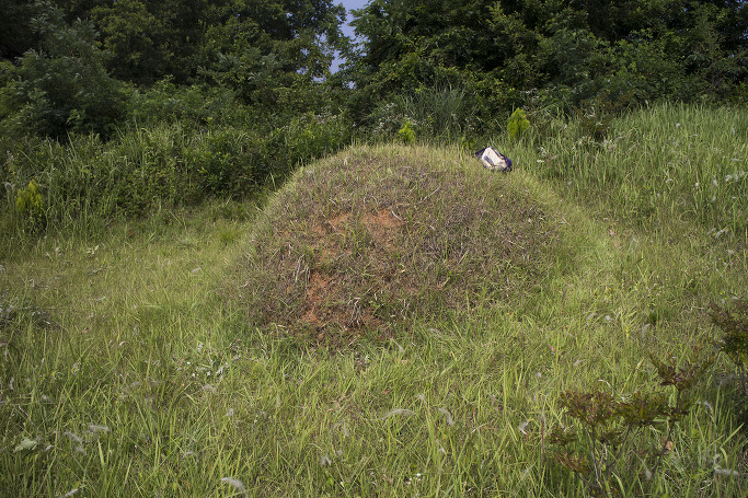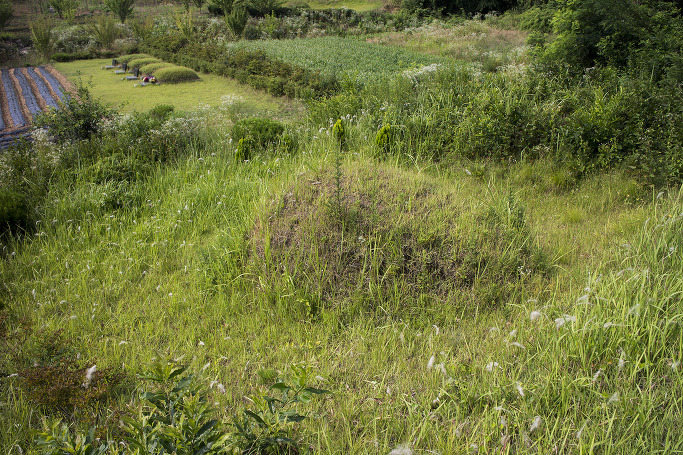 일단 봉분 위와 주변에 뿌릴 깊게 박고 있는 쑥대를 뽑아 냄.