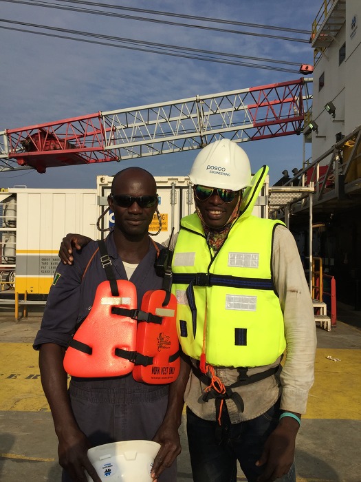 마지막 작업 마치고 하선하기 전 잭업 바지선 선원인 나이지리아 사람과 사진 찍었습니다.