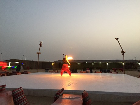 사막 한 가운데 야자잎으로 둘러쳐진 담장 안에서 마지막 코스가 이뤄 집니다.