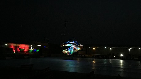 아랍음악에 맞춰 남자 무용수가 이상한 치마를 입고 빙빙도는 단조로운 춤을 추는데 어둠이 짙어지니 조명을 끄고 옷에 조명을 켜네요.