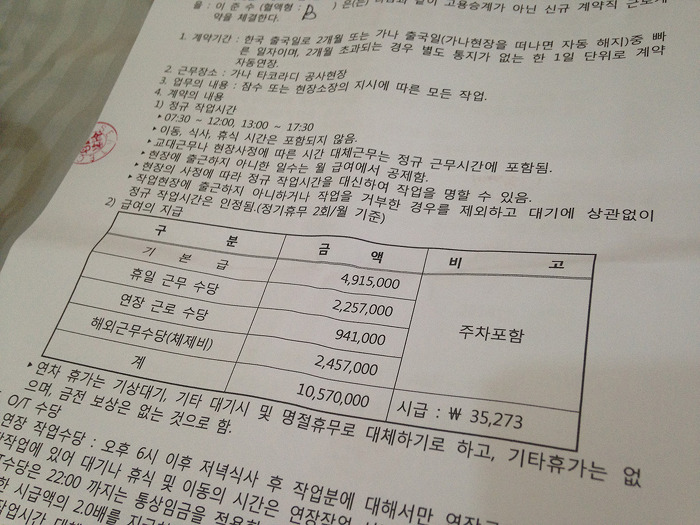 [아프리카] 가나 현장 근로 계약서.