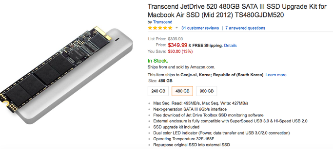제가 이번 아마존에서 구입한 jetdrive520은 아주 운 좋게, 저렴히 산것 같습니다.