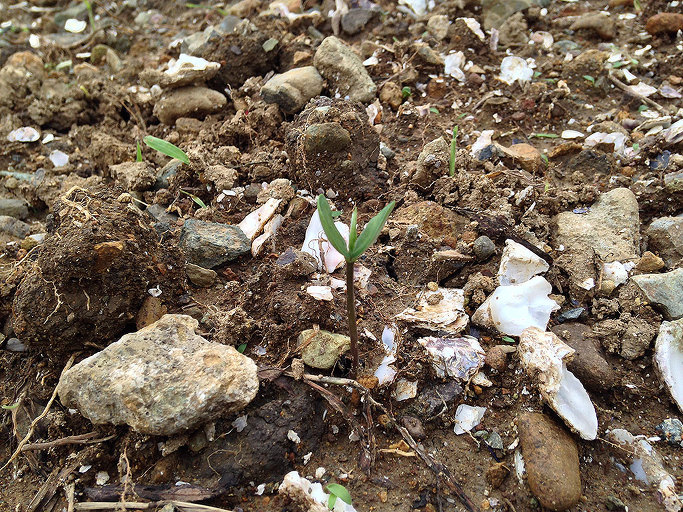 얼마 전 돌덩어리를 뒤집고 골라내 한뼘 정도의 텃밭을 만들었다.